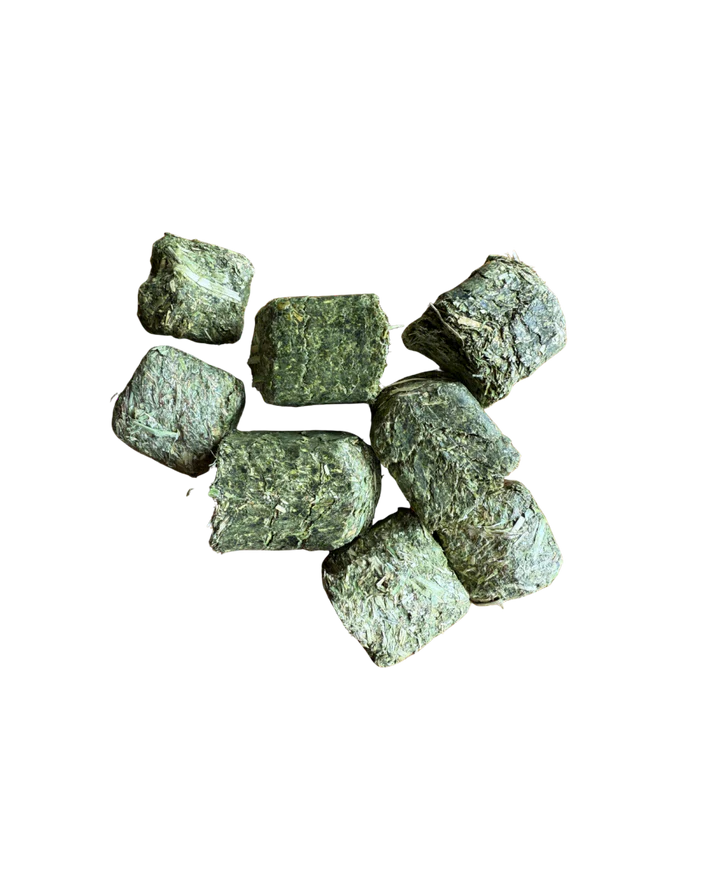 Feed cubes at 1 to 2% of the horses total body weight per day. Amount required varies with individual breeds, body condition and activity levels. For horses with teeth problems, we recommend soaking prior to feeding.